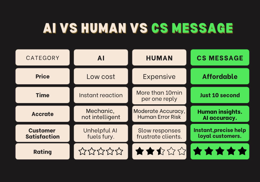 AI vs human vs CS message